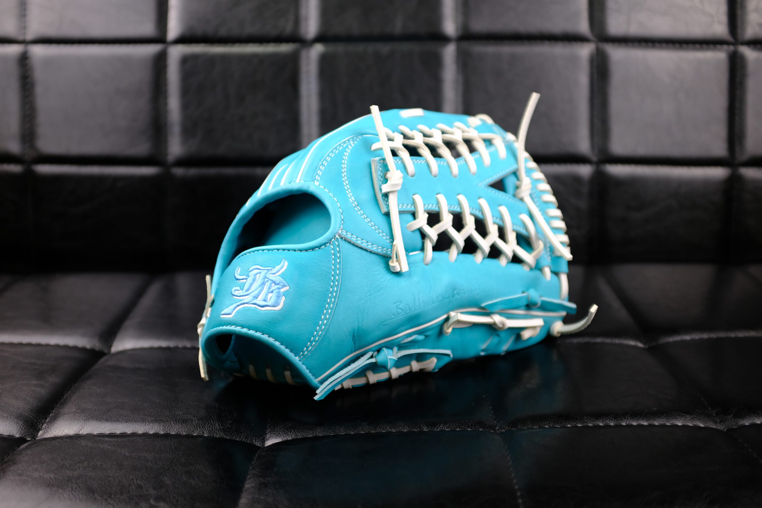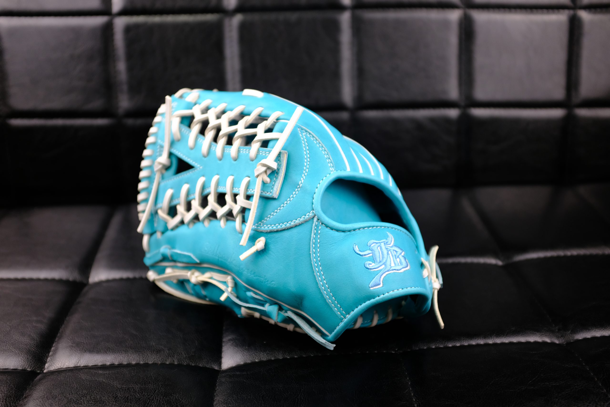 尺寸:約12.8吋 型號:JB-009 顏色:水藍色 帶皮顏色:白色 車縫線:白色 對應球種:硬式 日幣稅後價:78100 備反手 賣價14500